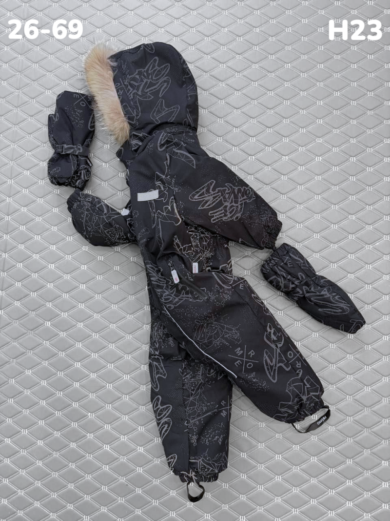 Комбинезон зимний на молнии с ветрозащитной планкой.