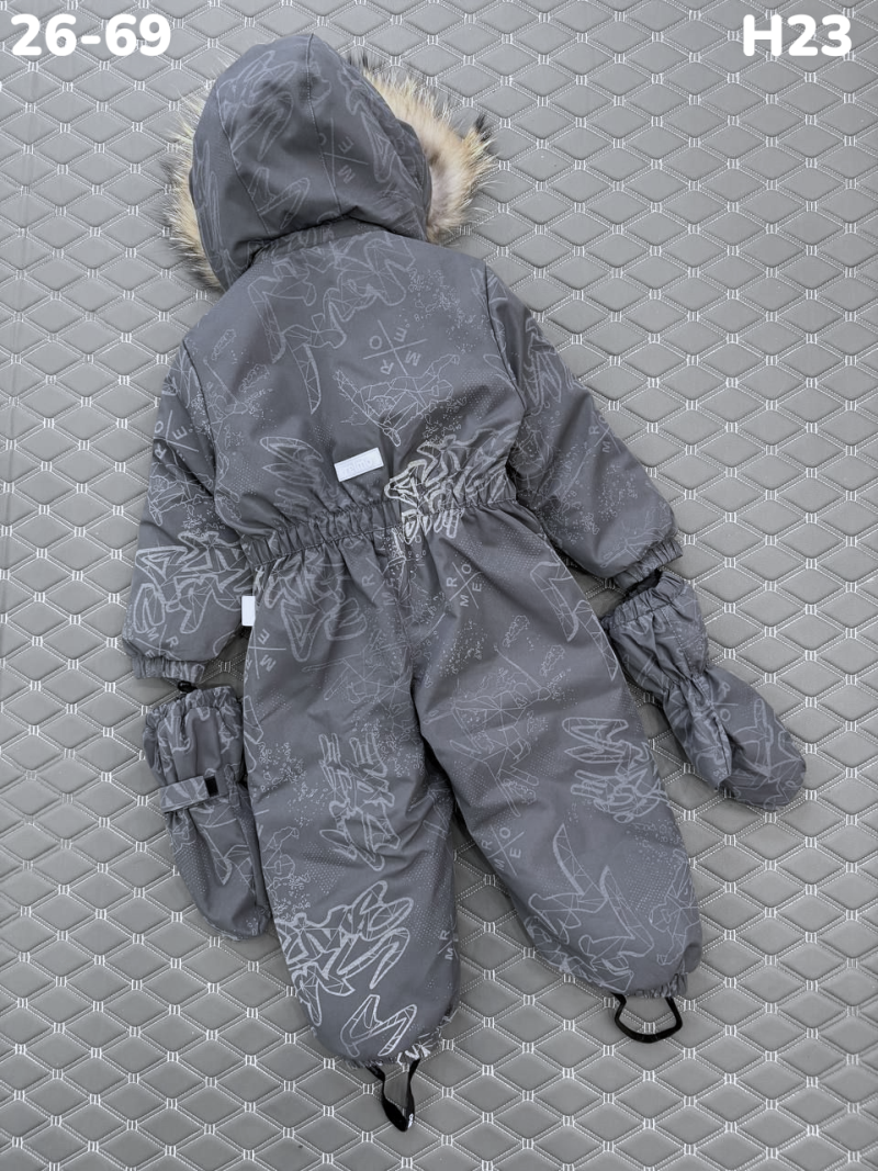 Комбинезон зимний на молнии с ветрозащитной планкой.