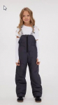 Полукомбинезон прямого силуэта на синтетическом утеплителе. Модель с регулируемыми бретелями из эластичной тесьмы. Верхняя часть переда стеганая горизонтальными переборками. Пояс притачной, собран на резинку. На переде выполнены боковые карманы. Застежка сбоку на кнопки. По боковым швам внизу выполнены шлицы, застегивающиеся на кнопки. По низу брюк полукомбинезона отделочная строчка.