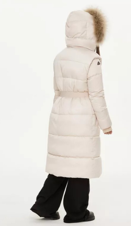 Шнур-резинка и стопоры с фирменным логотипом - кулиса капюшона.Мех натуральный -енот.Нашивка на рукавах.Пояс съемный с фирменным логотипом, застежка на фастекс.