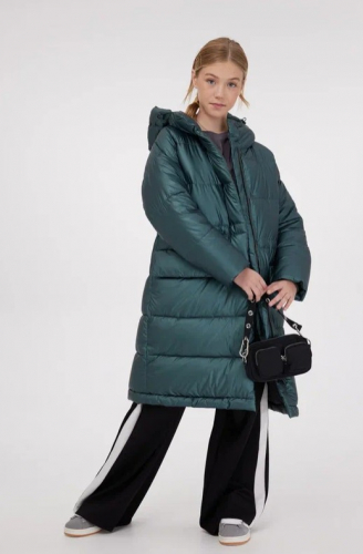 Изделие стеганое широкими гоизонтальными переборками. На талии выполнена регулируемая кулиса. На переде расположены боковые горизонтальные прорезные карманы с клапанами. Низ рукавов оформлен удлиненными трикотажными манжетами с вырезом для большого пальца.