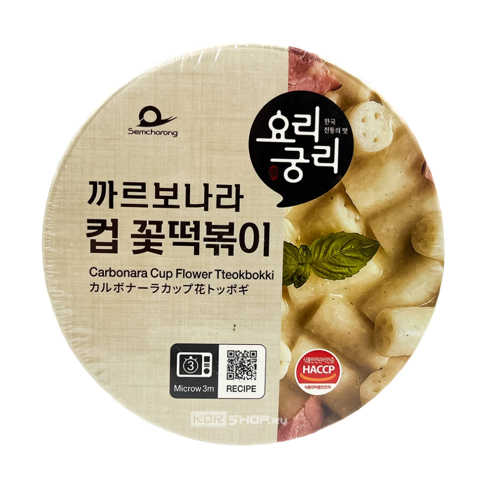 Токпокки со вкусом карбонара Yorigoongri – это сытное блюдо быстрого приготовления из корейских рисовых клецек-брусочков. Угощение представляет собой микс кулинарных традиций Востока и Запада. Популярное корейское блюдо токпокки приготовлено в культовом итальянском соусе карбонара, который полюбился ценителям своим сливочным сырно-яичным вкусом, подчеркнутым солью и черным молотым перцем.