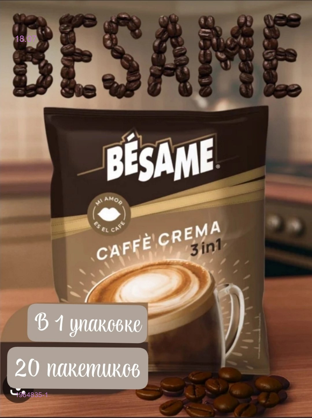 Цвет: Цвет 1КОФЕ « ..показатьBESAME » CAFFE CREMA 3в1в уп 20шт по 23,5грBESAME » CAFFE CREMA 3в1