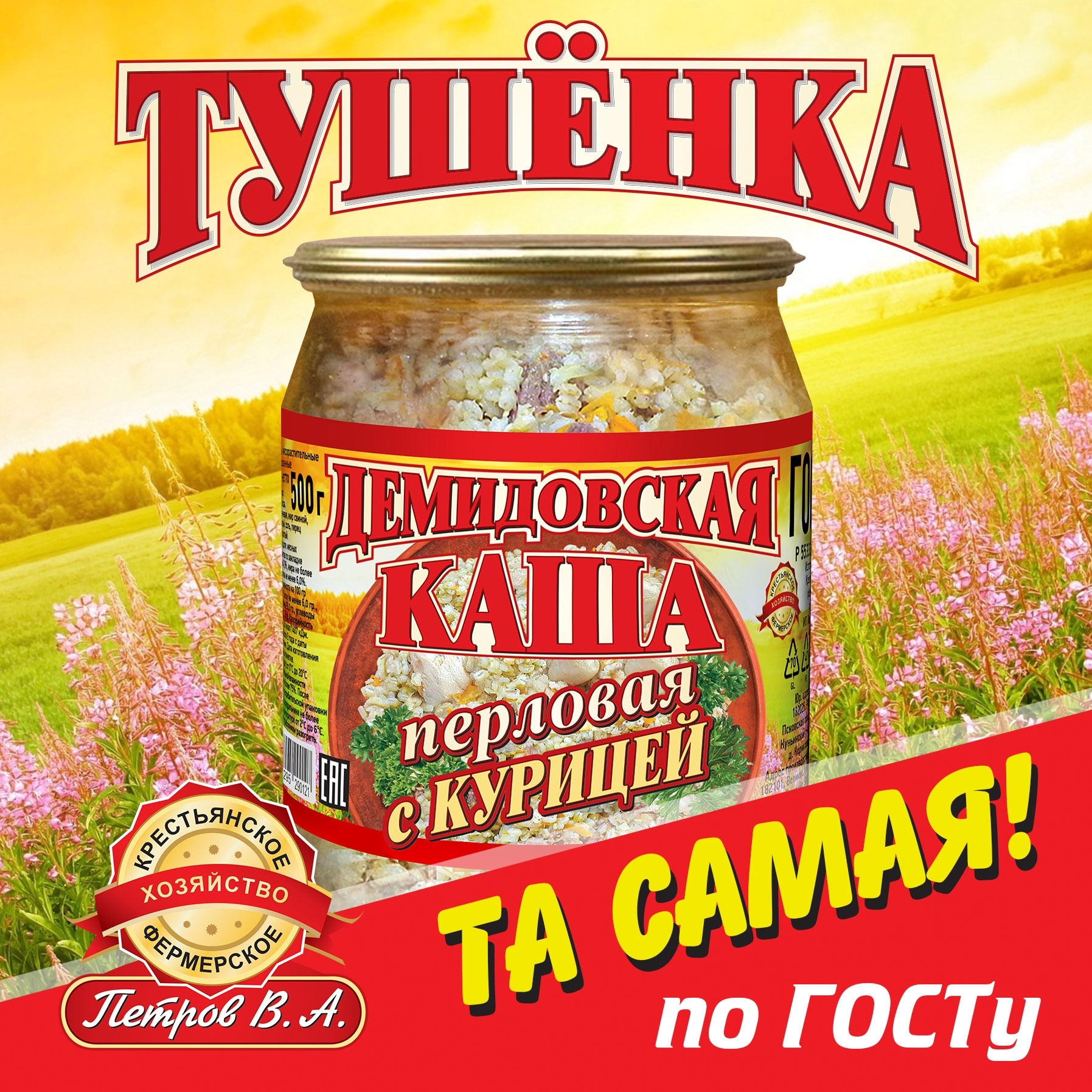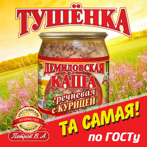 Состав : курица, крупа перловая, жир свиной, лук репчатый сушеный, морковь сушеная, перец молотый, соль.