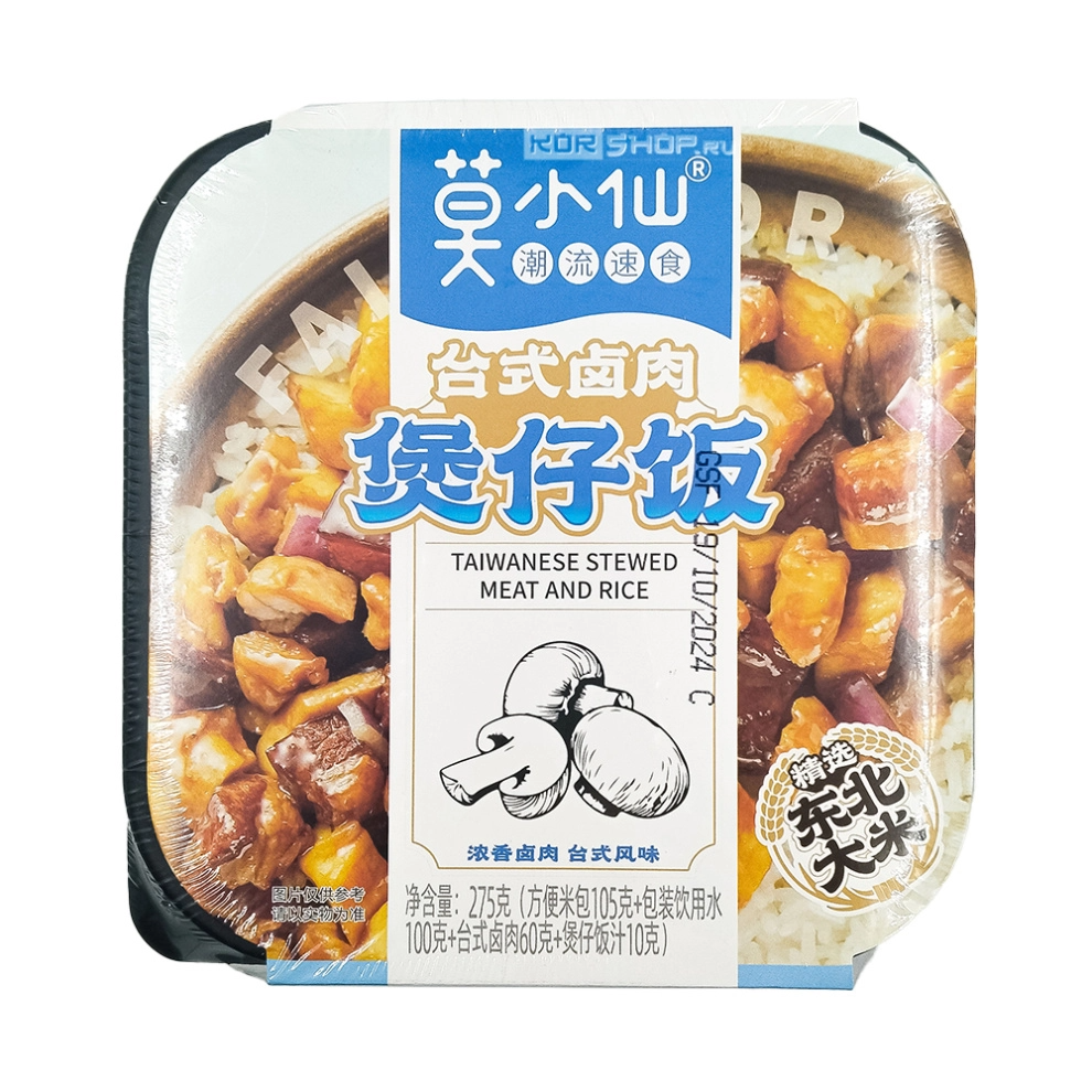 Рис б/п саморазогревающийся со свининой по-тайваньски Fairie Mor позволит ценителям насладиться знаменитым блюдом ресторанного уровня из свинины с рисовым гарниром. Свинина по-тайваньски – это известное во всем мире китайское угощение из карамелизованной сладковато-солоноватой свинины, тушенной «по-красному» - в соевом соусе с добавлением леденцового сахара и пряностей. Такое блюдо отличается дразнящими аппетитными ароматами, насыщенным богатым вкусом и характерным темно-красным цветом.