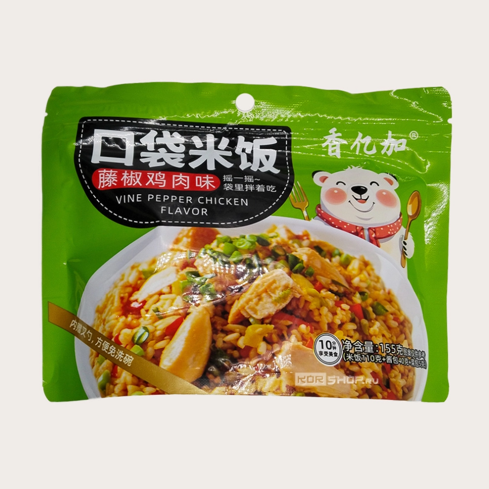 Рис быстрого приготовления со вкусом курицы с перцем Kouda Mifan – это сытный гарнир по-китайски, пропитанный аппетитным перечно-чесночным соусом на основе соевого с куриным вкусом. Блюдо готовится прямо в упаковке за 10 минут, для этого его нужно лишь залить кипятком и подождать. Это угощение – отличная альтернатива лапше быстрого приготовления. Рис очень гигроскопичен и великолепно впитывает в себя соус, становясь ароматным, мягким и нежным. Можно без всяких усилий сотворить себе горячую трапезу прямо на рабочем месте или в дороге.