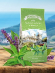 Состав: мята перечная листья, мелисса лекарственная письмо, шалфей листья и соцветия, ежевика листья, чабрец трава, розмарин лекарственный листья, роза эфиромасличная лепестки.