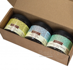 Подарочный набор из 3 видов чая: Брызги Шампанского Черный с мелиссой и мятой Эрл Грей Голубой Цветок Подарочная коробка, красивые баночки для хранения сыпучих продуктов. Готовый вариант для подарка. Объем баночек 200 мл.