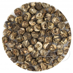 Великолепный зеленый чай с бутонами жасмина. Аромат при заваривании заполняет всю комнату, можно заливать дважды. Вкусен и в горячем и в холодном виде. Хорошо утоляет жажду.