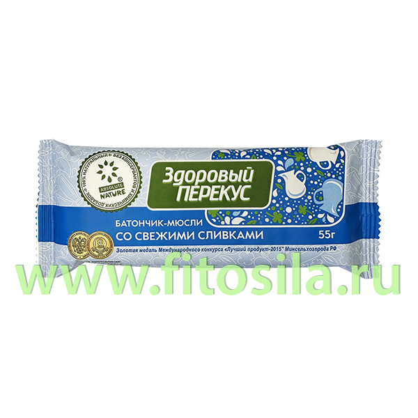 Батончик-мюсли "Здоровый перекус" СО СВЕЖИМИ СЛИВКАМИ, 55г
