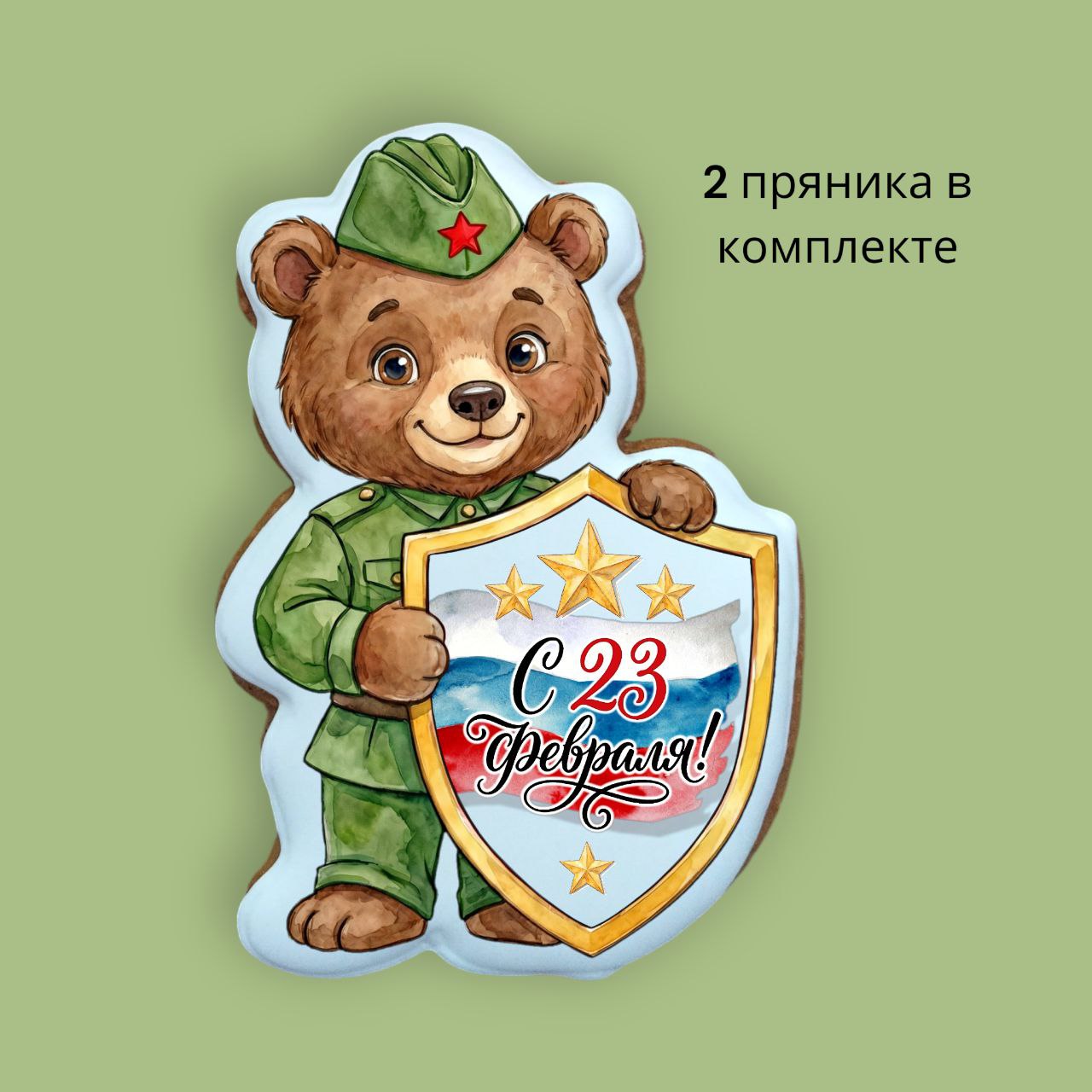 2 пряника 23 февраля МИШКА С ЩИТОМ