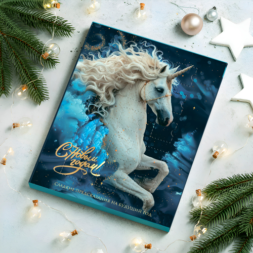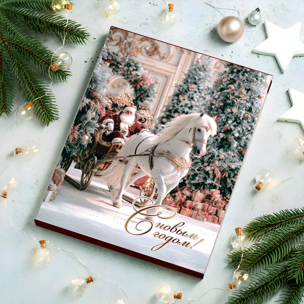 ★︎ Адвент-календарь с шоколадом "С Новым годом (Дед мороз с белой лошадью)", 15 шт. по 5 г.