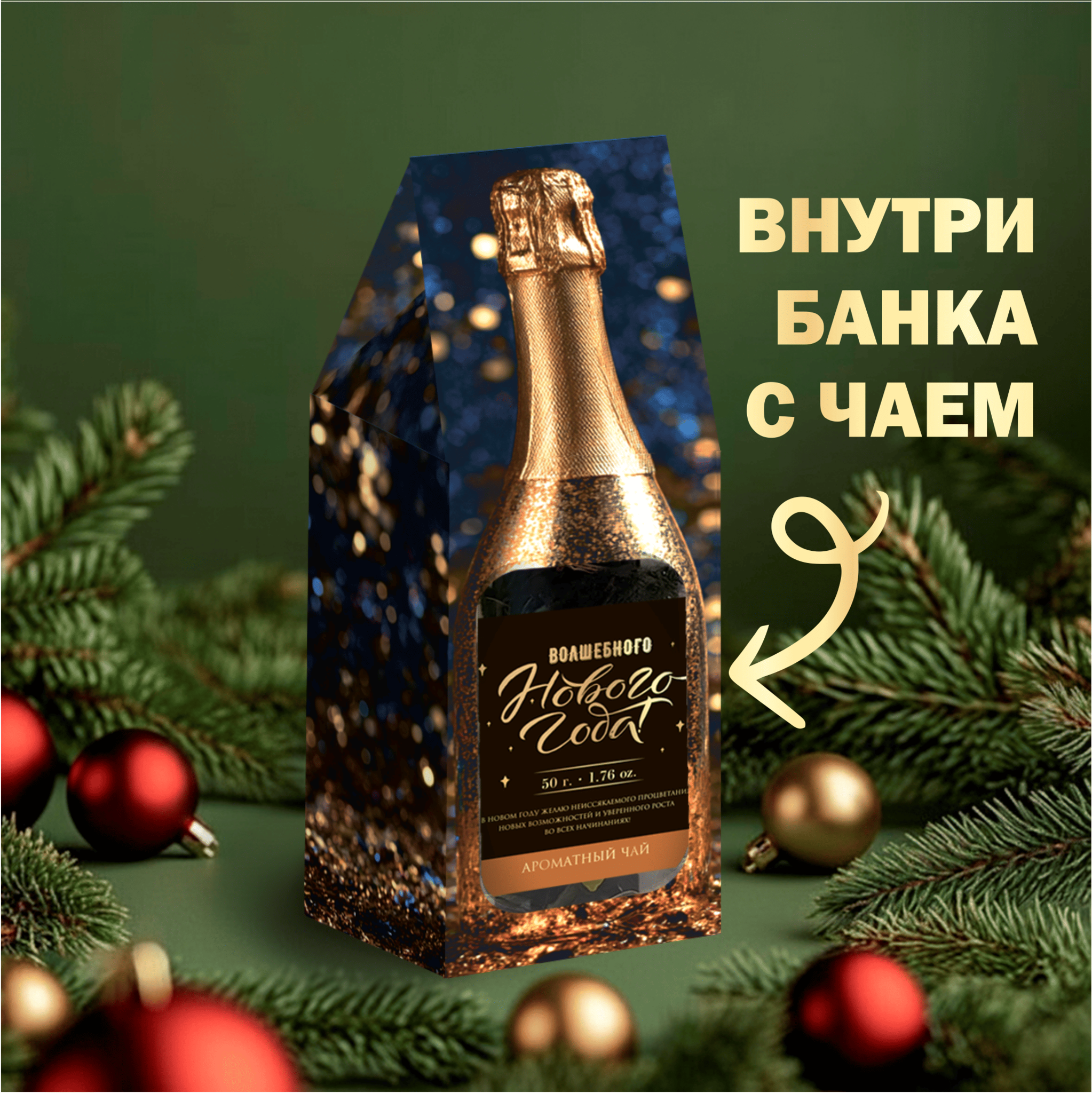 Чай в подарочной упаковке шампанское (Волшебного Нового года - золотое), чёрный с чабрецом, 50 г.