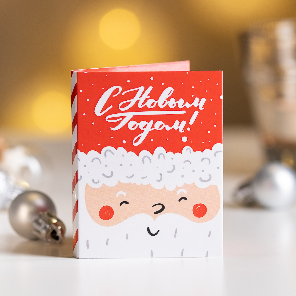 Мини-открытка "С новым годом (дед мороз, красный)"