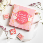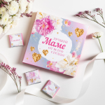 Каждая шоколадка упакована в индивидуальную этикетку с пожеланием.