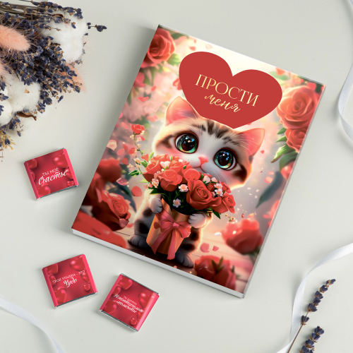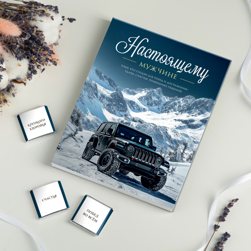 Каждая шоколадка упакована в индивидуальную этикетку с пожеланием.