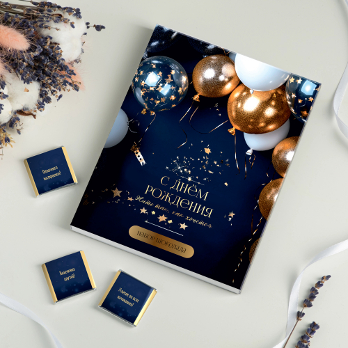 Набор 12 шоколадок "С днём рождения (тёмный с золотыми шарами)"