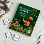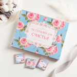 Каждая шоколадка упакована в индивидуальную этикетку с пожеланием.