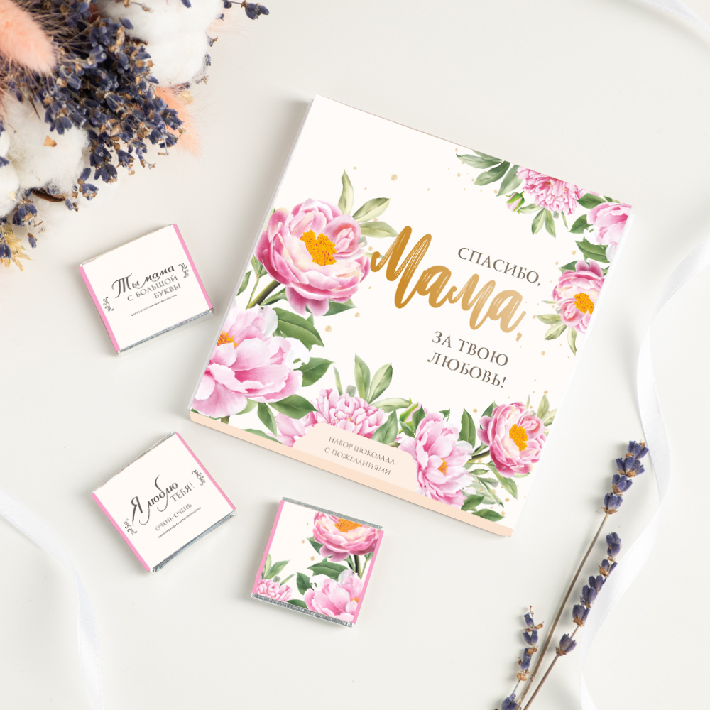 Набор 9 шоколадок "Спасибо, мама, за твою любовь" (светлый с цветами)
