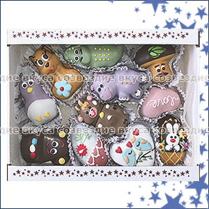 Огромный ассортимент: конфеты – оригинальные, пралиновые (в том числе двухслойные), с нугой, орехом и карамелью, с мягким грильяжем, желейно-молочные с тоффи, помадно-молочные и помадные с начинкой, суфле, жевательная карамель