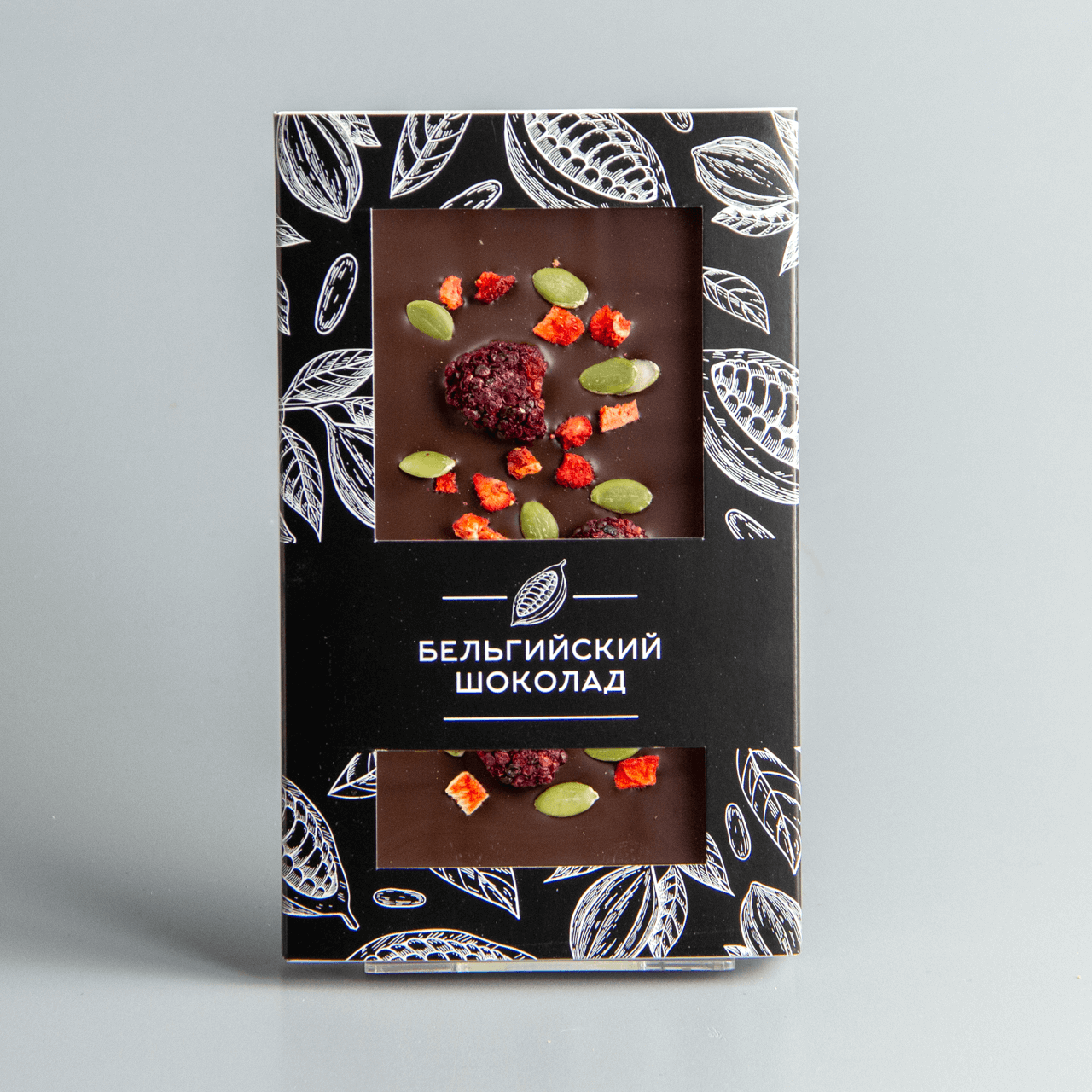 NEW! Тёмный шоколад с клубникой, ежевикой и семечками тыквы #27