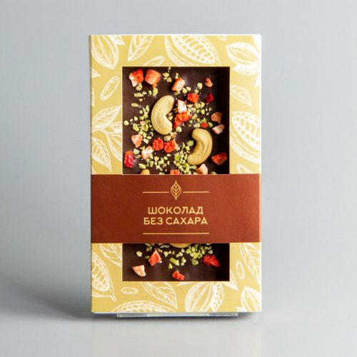 Тёмный шоколад с клубникой, фисташками и жаренным кешью без сахара #2