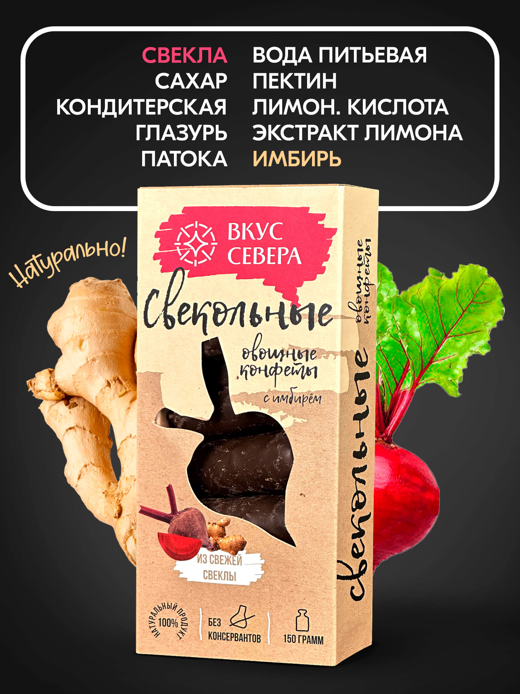 Вологодские конфеты овощные в шоколаде СВЕКОЛЬНЫЕ С ИМБИРЁМ 150гр пенал