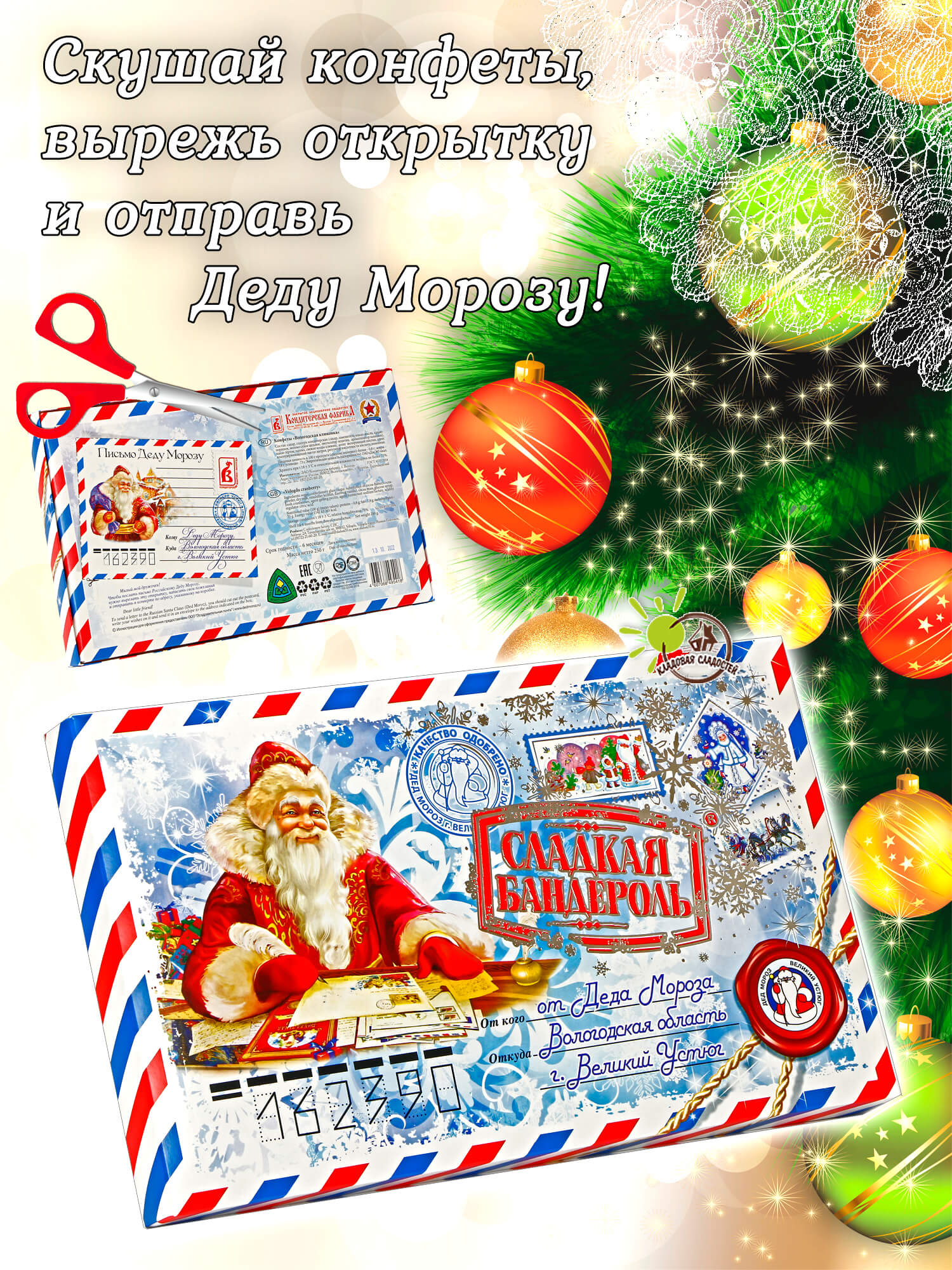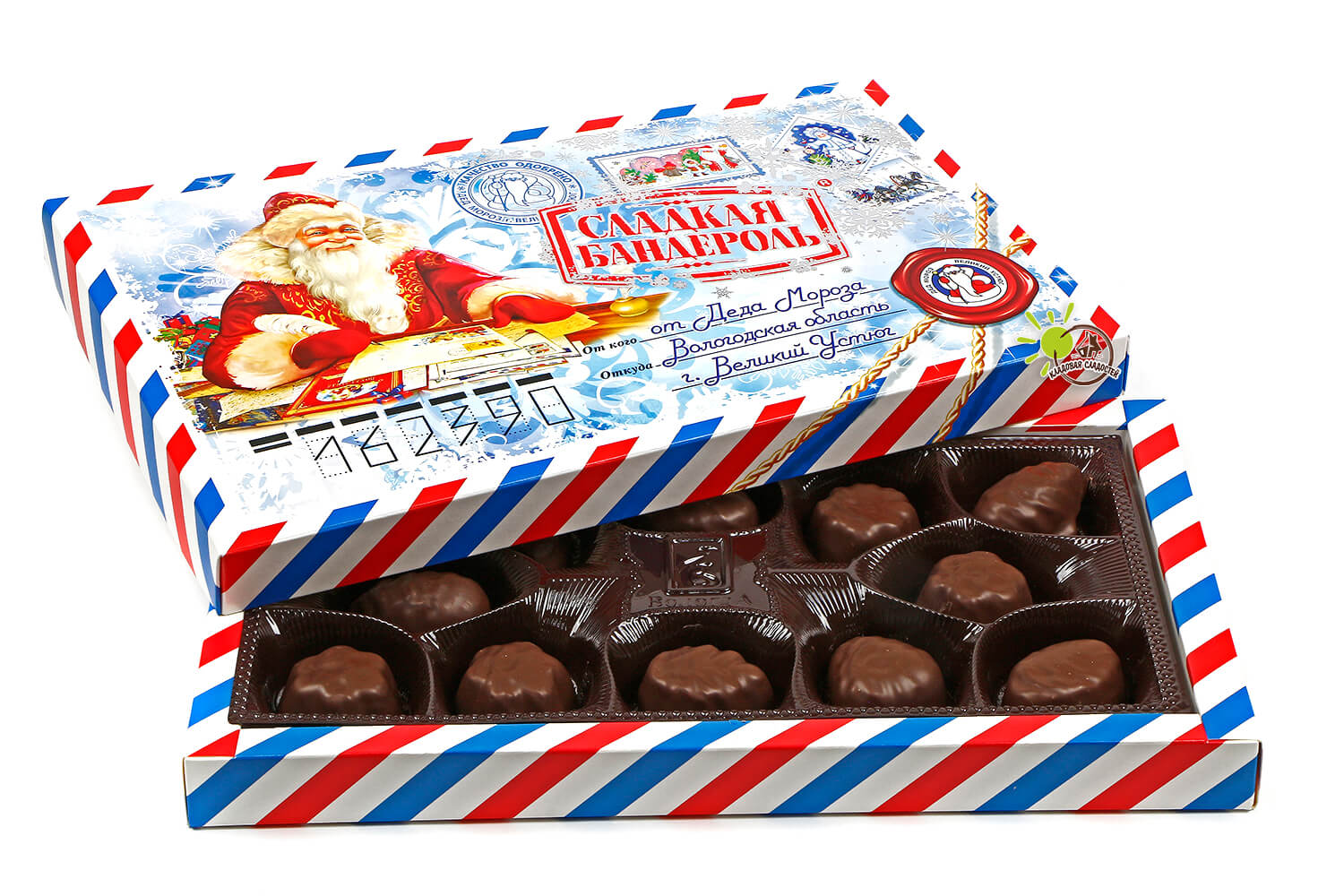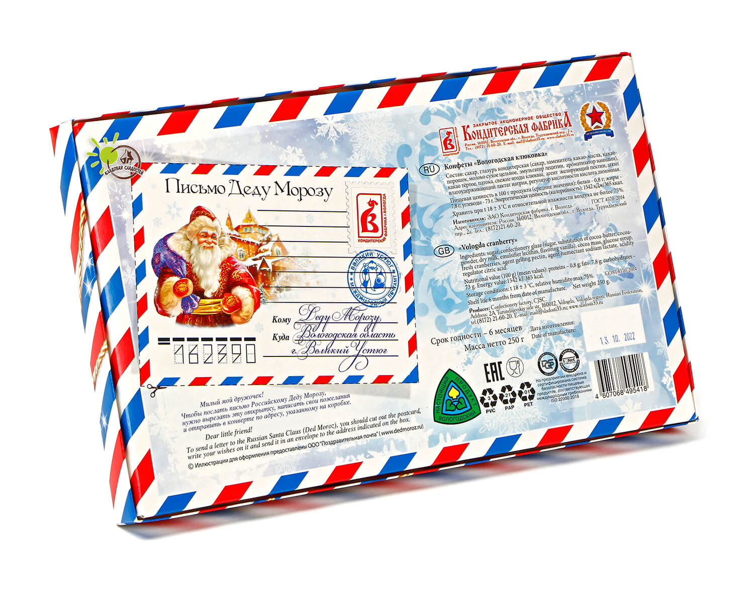 Купив коробку конфет "Сладкая бандероль", вы не только насладитесь вкуснейшими вологодским конфетами, но и сможете отправить поздравление самому Деду Морозу, чему он будет несказанно рад.
