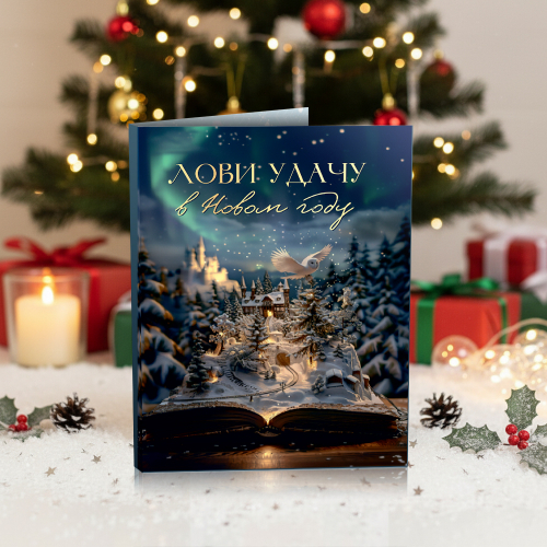 Мини-открытка "Лови удачу в Новом году (волшебный город ночной)"