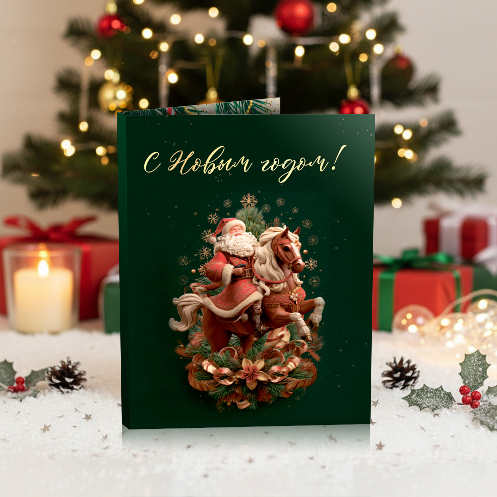 ★︎ Мини-открытка "С Новым годом (Дед мороз с лошадью)