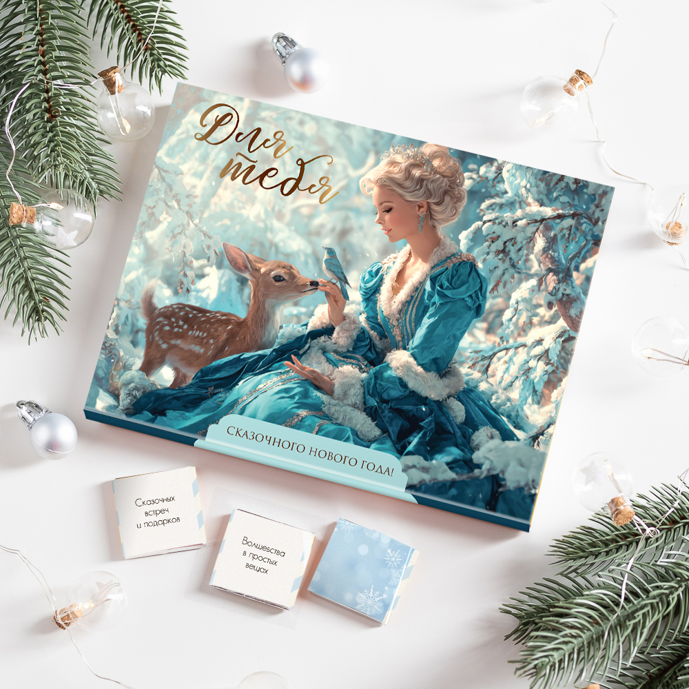 Набор 12 шоколадок "Для тебя (снегурочка с оленем и птичкой)"