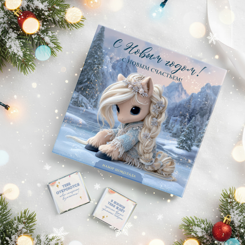 ★︎ Набор 9 шоколадок "С Новым годом, с новым счастьем (белая лошадка)"