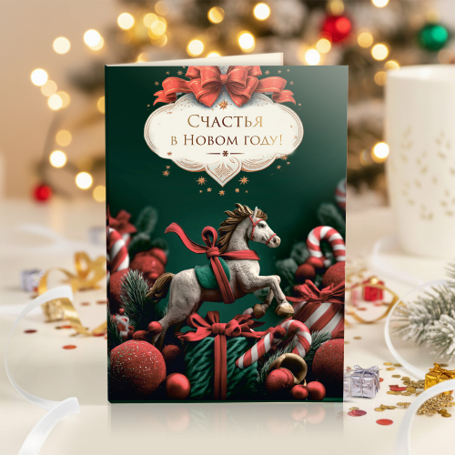 ★︎ Открытка 4 шоколадки "Счастья в Новом году! (лошадь)"