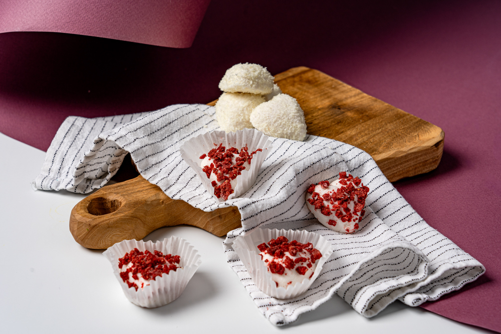 Вода, сахар, патока, пектин, кокосовая стружка, субимированный инжир, лимонный сок, натуральный краситель михром белый, ваниль.