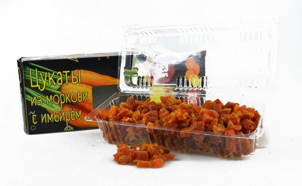 Цукаты из моркови с имбирем на фруктозе — полезное лакомство, которое станет удачным дополнением к здоровому рациону. Сладкий снек отличается богатым содержанием витаминов, полезных микроэлементов. Морковные цукаты упакованы в просвечивающийся пластиковый контейнер и обертку с аппетитным дизайном.
