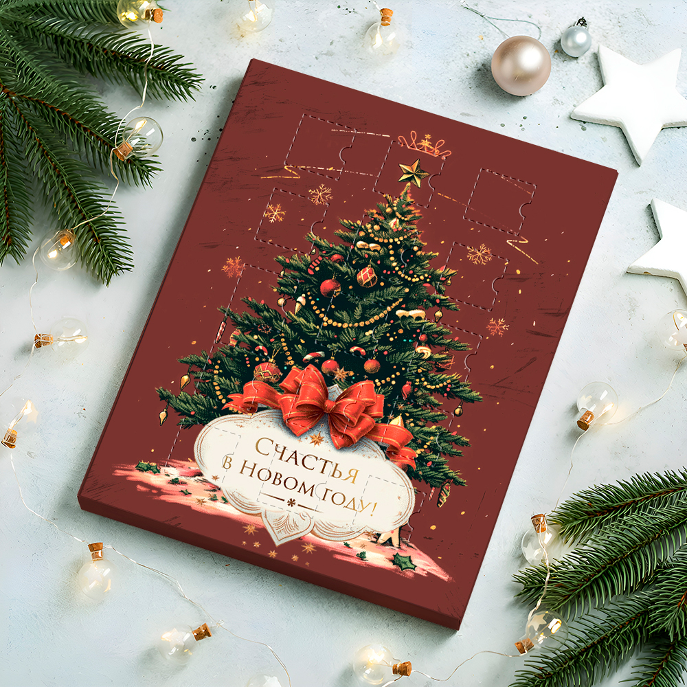 Адвент-календарь с шоколадом "Счастья в Новом году! (ёлка на красном)", 15 шт. по 5 г.