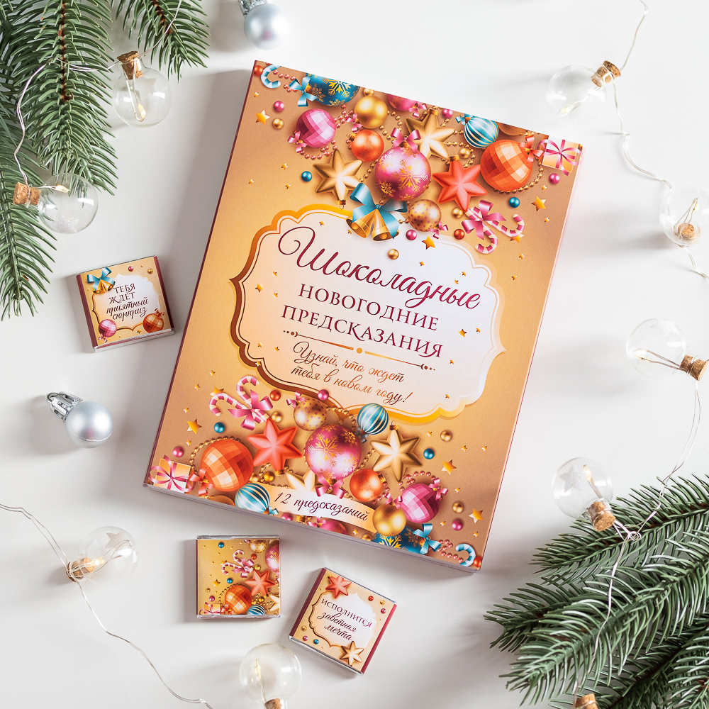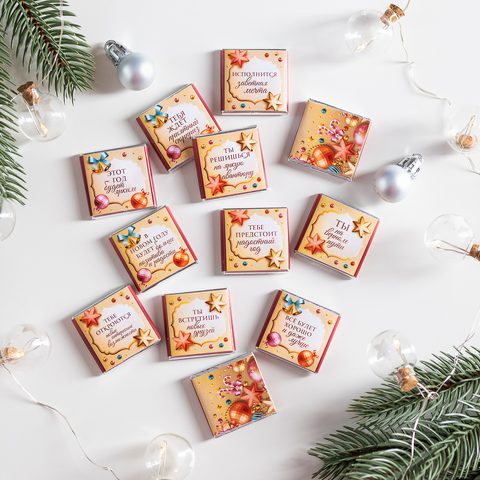 Набор 12 шоколадок "Шоколадные новогодние предсказания (золотой)"