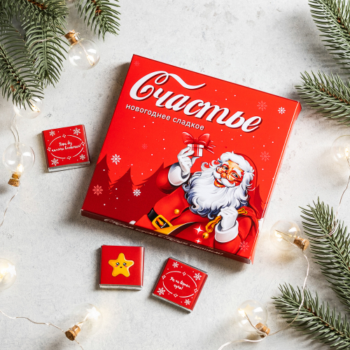 Внутри 9 шоколадок (вес: 5 гр., размер: 31 х 31 мм.)