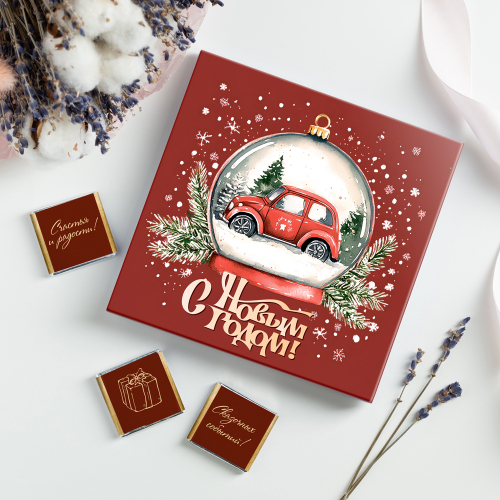 Набор 9 шоколадок "С Новым годом! (белый мишка возле ёлки)"