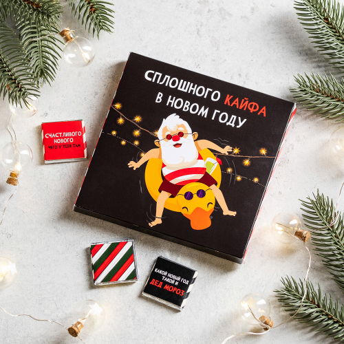 Каждая шоколадка упакована в индивидуальную этикетку с пожеланием.