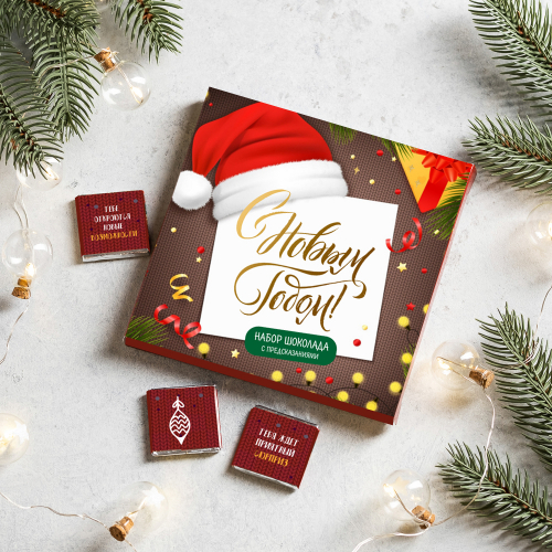 Каждая шоколадка упакована в индивидуальную этикетку с пожеланием.
