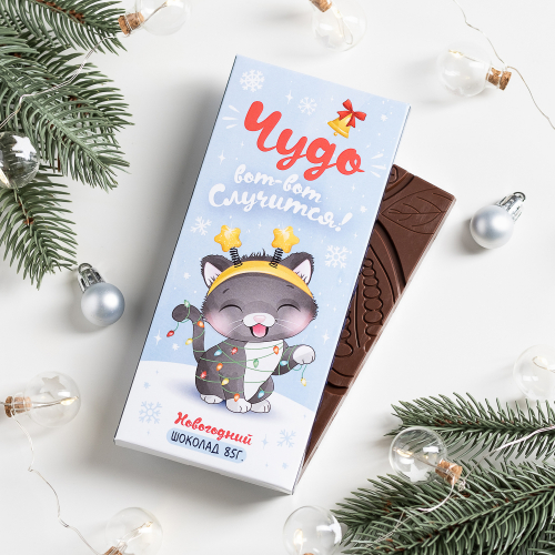 Каждая шоколадка упакована в индивидуальную этикетку с пожеланием.