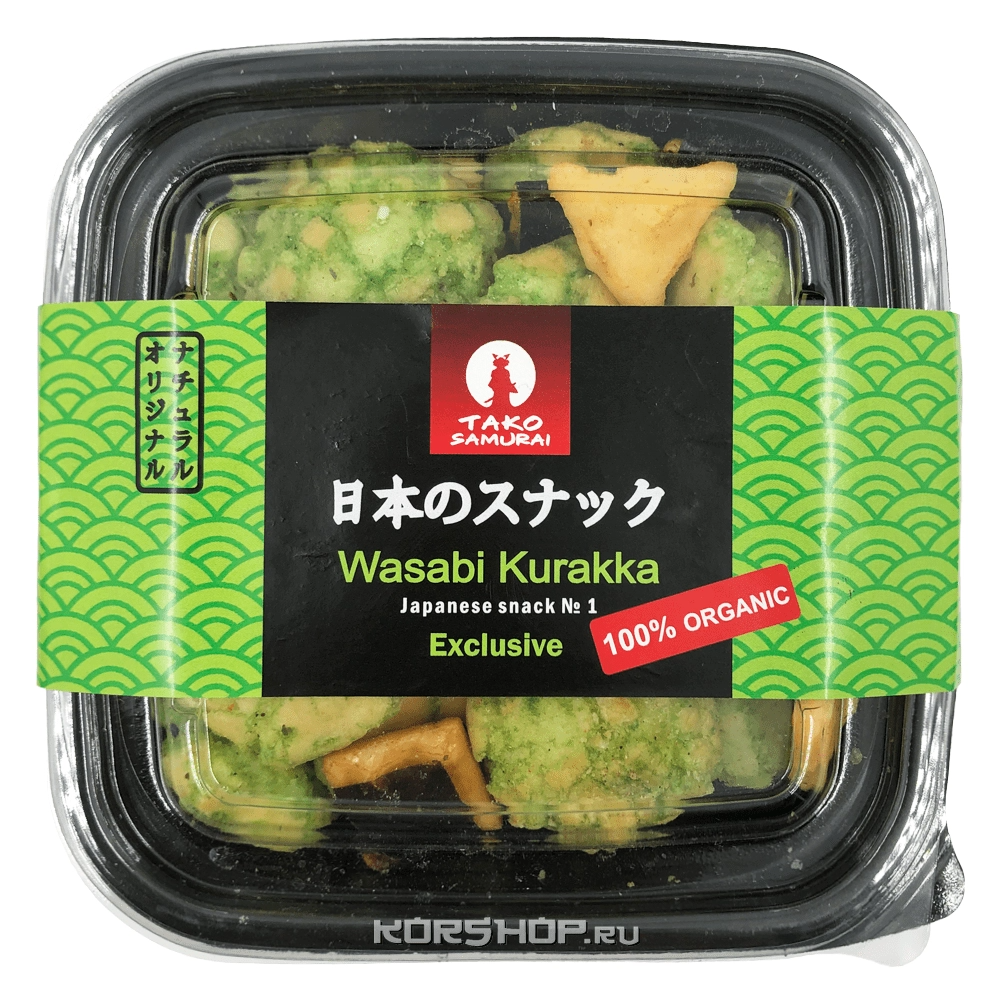 Японские снэки Васаби Куракка от торговой марки «Тако Самурай» отличаются ярким острым вкусом, который приведет в восторг поклонников азиатской кухни. Они изготавливаются из рисовой муки с добавлением традиционных специй, соусов, сыра тофу. Продукт имеет прекрасный натуральный состав.