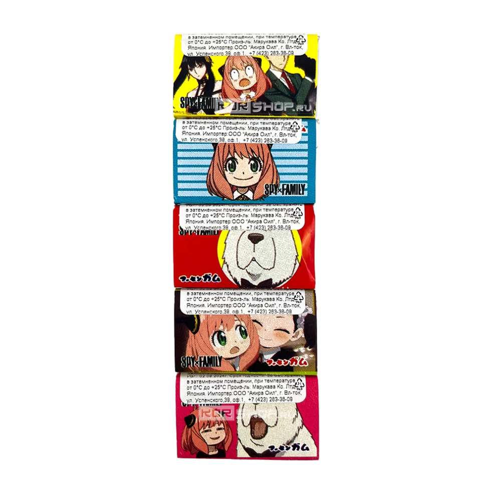 Жевательная резинка «Шпионская семейка» Marukawa – это качественная японская жвачка, мягкая и эластичная. Из нее получится выдувать огромные пузыри, что очень нравится детям. В дизайне упаковки жевательных резинок этой серии использованы персонажи новой модной манги, адаптированной в аниме-сериал «Spy Family», премьера которого состоялась в 2022 году.
