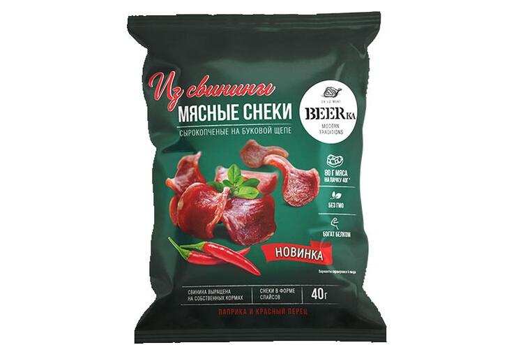 Сырокопченые слайсы из свинины с паприкой, чесноком, мускатом и перчиком.