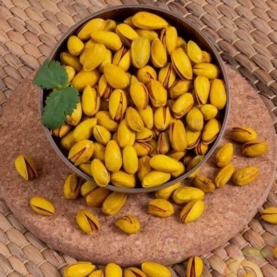 Фисташки жареные с шафраном - это сорт фисташек, который обжаривается с добавлением пряности Шафран. Фисташки имеют золотисый цвет и онеобычный вкус. Как и все сорта фисташек, онибогаты витаминами и минералами и отлично подходят для перекусов. Посредством фисташек можно регулировать аппетит. А это отличная находка для страдающих диабетом. В фисташках присутствует около 90 % полезных жиров, снижающих показатели холестерина и риск к недомоганиям сердца. Они также известны как продукт для достижения стройности, за счет своей малой калорийности и большому содержанию клетчатки. Ученые доказали, что каждодневное употребление этих орехов способно уменьшить риск появления рака в легких или других органах. Рекомендуется эти орехи употреблять при таких заболеваниях, как гипертония, малокровие, туберкулез, бесплодие, недостаточная потенция. Используют в качестве добавки для разных блюд, или же в чистом виде, не больше 100 грамм в день. С потреблением фисташек лучше всего отказаться от растительного масла.
