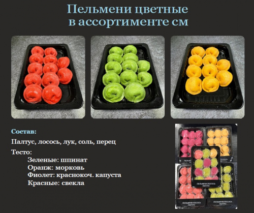 Блины разноцветные палтус-лосось Ручная лепка
