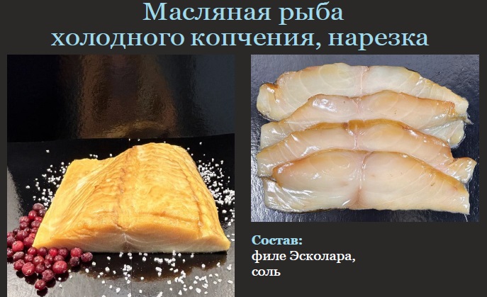Масляная рыба нарезка филе без шкуры холодного копчения
