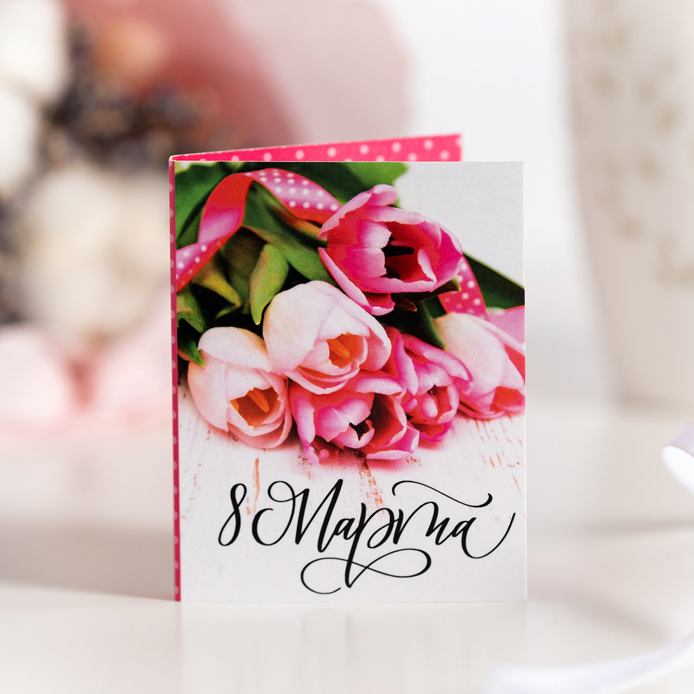 Мини-открытка "8 марта (букет тюльпанов на белом фоне)"