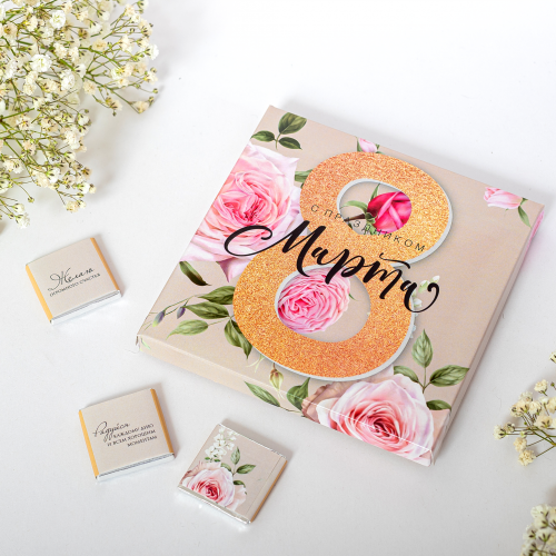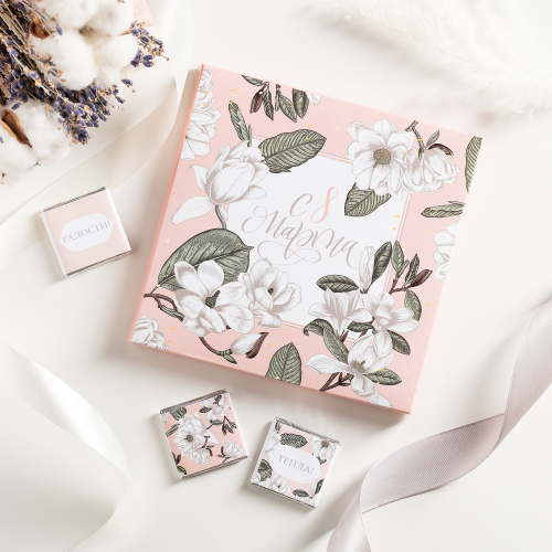 Набор 9 шоколадок "С 8 марта, с днем весны (цветы на сиреневом)"